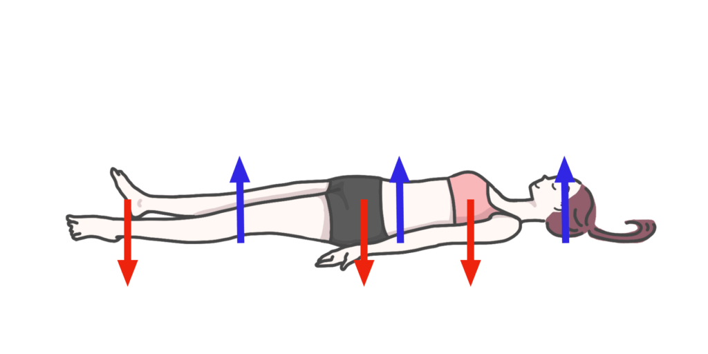 - 背中だけがベッドに強く当たる