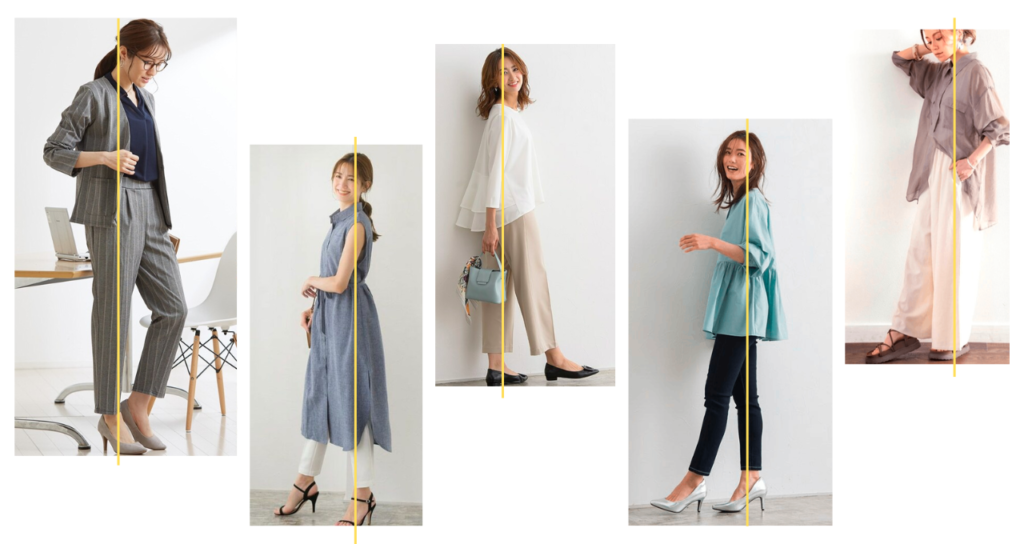 ファッションモデルがまさに中心軸がそろった真っ直ぐな姿勢で綺麗です。